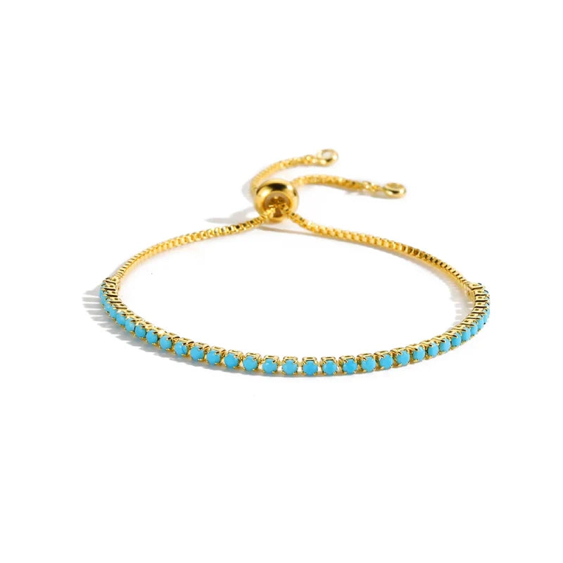Découvrez l'élégance intemporelle de nos bracelets turquoise. Plaqués or 18K et résistants à l'eau, ils vous accompagnent avec raffinement, sans effort, au quotidien.