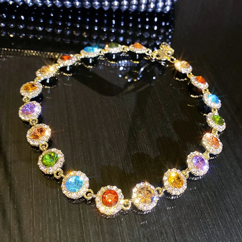 Révélez votre allure la plus distinguée. Ce collier vibrant est conçu pour sublimer chaque tenue, captivant le regard par son éclat pétillant. Chaque cristal est une note de couleur, une promesse de rayonnement.