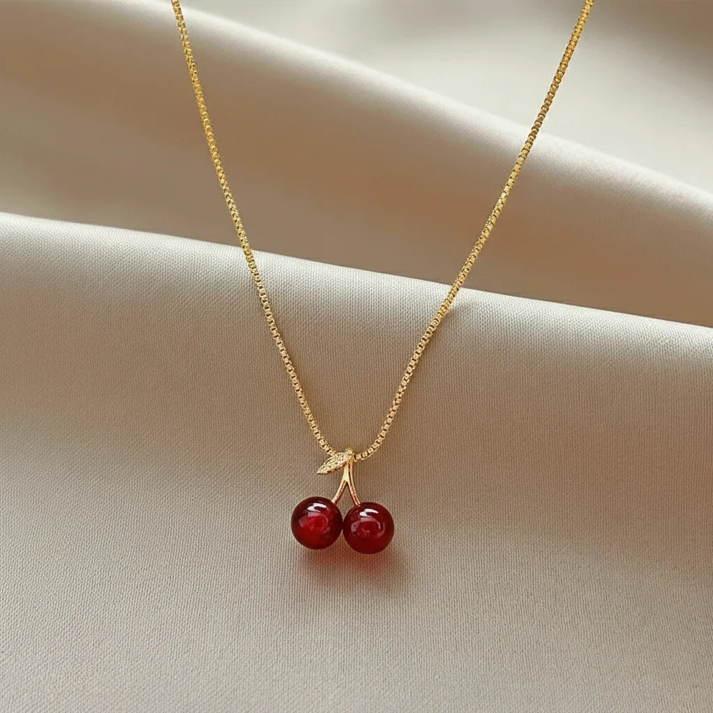 Chaque détail est une promesse de distinction. Une chaîne délicate, des cerises méticuleusement travaillées pour un éclat durable qui sublime votre allure, jour après jour.